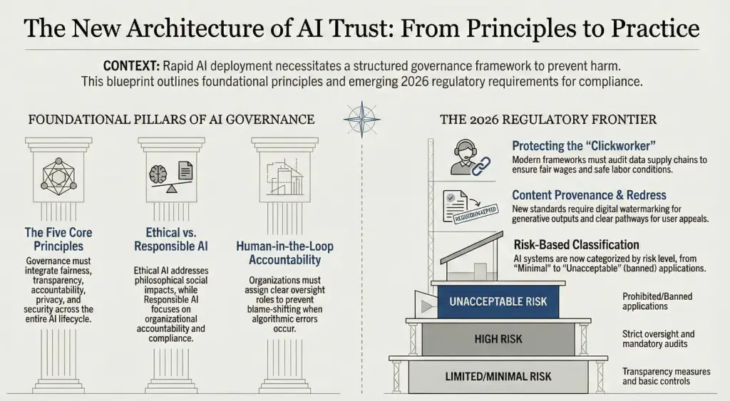 Synthetic intelligence shapes choices in enterprise, healthcare and authorities and we should be constructing moral and clear AI frameworks. Individuals fear about bias, opacity and information misuse. Speedy AI deployment with out moral planning may cause reputational hurt and authorized points. Accountable AI governance ensures innovation advantages society and preserves equity.